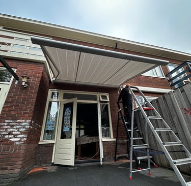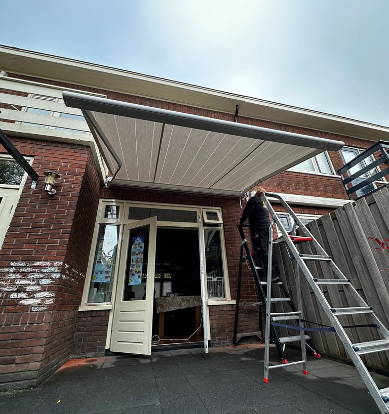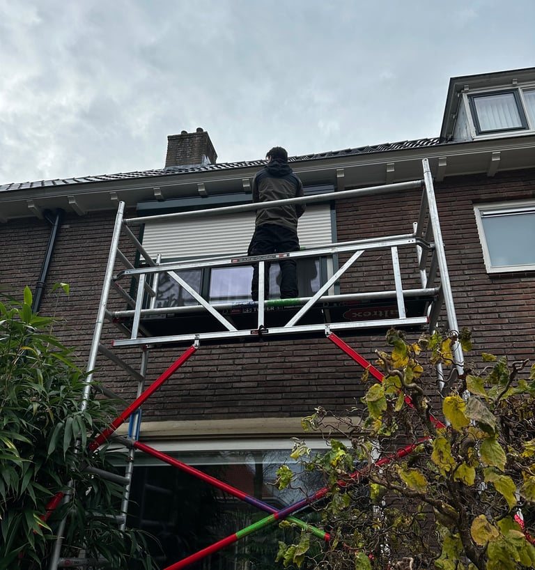 Wanneer we zonwering monteren op een eerste verdieping of hoger, kiezen we standaard voor een stabiele steiger. Dit heeft drie belangrijke redenen: